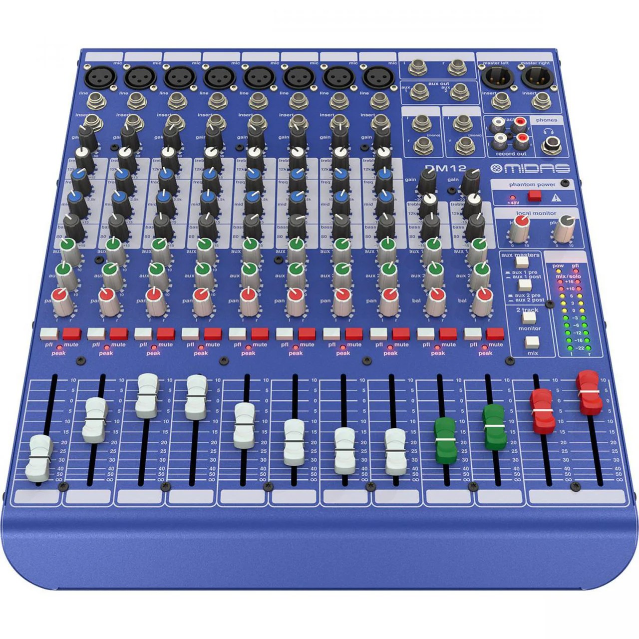 La DM12 de MIDAS es una mezcladora analógica de 12 canales, conocida por sus preamplificadores de micrófono de alta calidad y su ecualizador preciso.Perfecta para aplicaciones de sonido en vivo, la DM12 ofrece un control intuitivo y una calidad de sonido excepcional en un formato compacto.